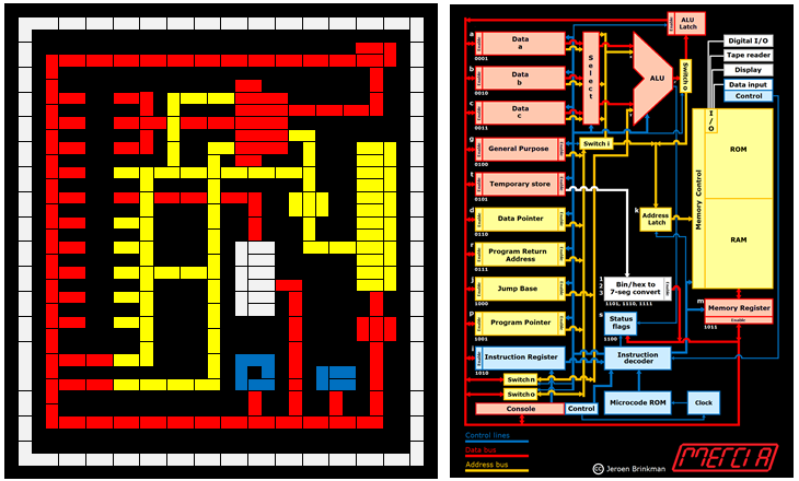 A very special instruction is the NOP or No Operation. This instruction is created to deal with memory problems. If a memory bit got defect, for instance a single DIP switch can’t be switched off, it is practical to be able to neutralize the byte. Therefore an instruction with solely 1 or solely 0 will act as a NOP instruction. Some logic has to be created to be able to use the instruction 0000xxxxxx and 1111111xxx also for other purposes.